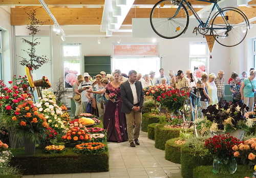 'Rosenschau und Radrennbahn - Schönheit und Historie' - Eröffnung der Schnittrosenschau 24.06.2016 16:00 - Helmut Fleischhauer ![]() Ich verrate ihnen schon einmal .. ein Besuch lohnt und die Verbindung des Mottos wurde mit den über 4.000 Rosen und den Leihgaben aus dem Radsport treffend umgesetzt. Bürgermeister Philipp Wesemann bedankte bei all den Sponsoren und Unterstützern die auch in diesem Jahr wieder die traditionelle Schnittrosenschau ermöglicht haben. Romy Ruff sprach als Vorstandsmitglied der Fördervereins Ostdeutscher Rosengarten und versicherte auch in Zukunft die Unterstützung des Vereins. Hans-Rainer Engwicht war heute verhindert, aber aus einem schönen Grund. Als Geburtstagskind musste er sich heute um seine Gäste kümmern. Maja Avermann, Teamleiterin der Rosengartens, schloss sich dem Dank an und lobte ganz besonders die Mitarbeiterinnen und Mitarbeiter des Betriebsamtes, ohne deren Arbeit weder die Schnittrosenschau noch der Rosengarten für die Besucher so toll hergerichtet wäre. Für Rosenkönigin Stefanie I. war die heutige Eröffnung der vorletzte Auftritt ihrer Amtszeit. Heute Abend wird sie ihre Nachfolgerin zur 26. Forster Rosenkönigin krönen. |